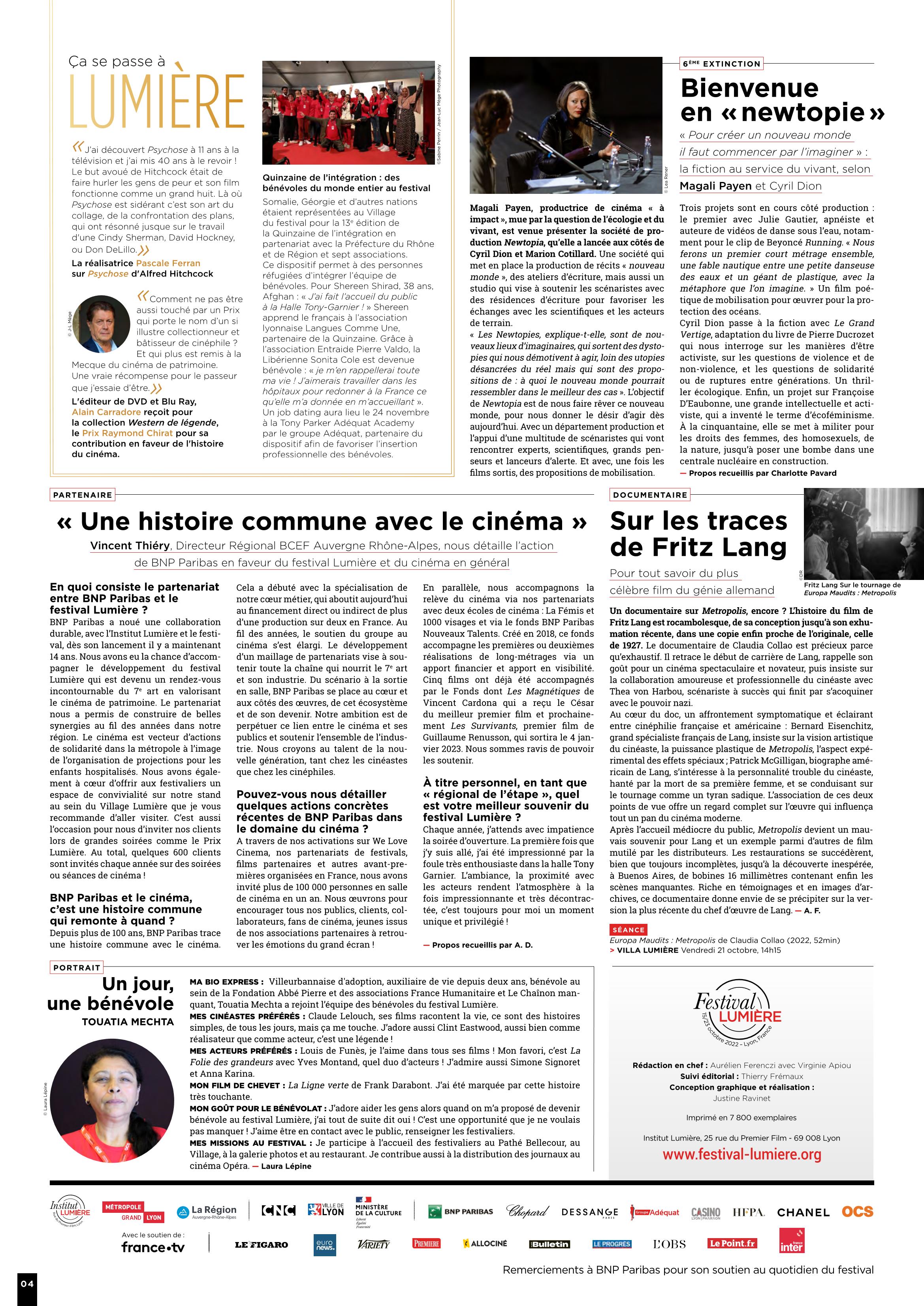 Journal du Festival LUMIERE de Lyon – 07 – 211022 – Vendredi -.