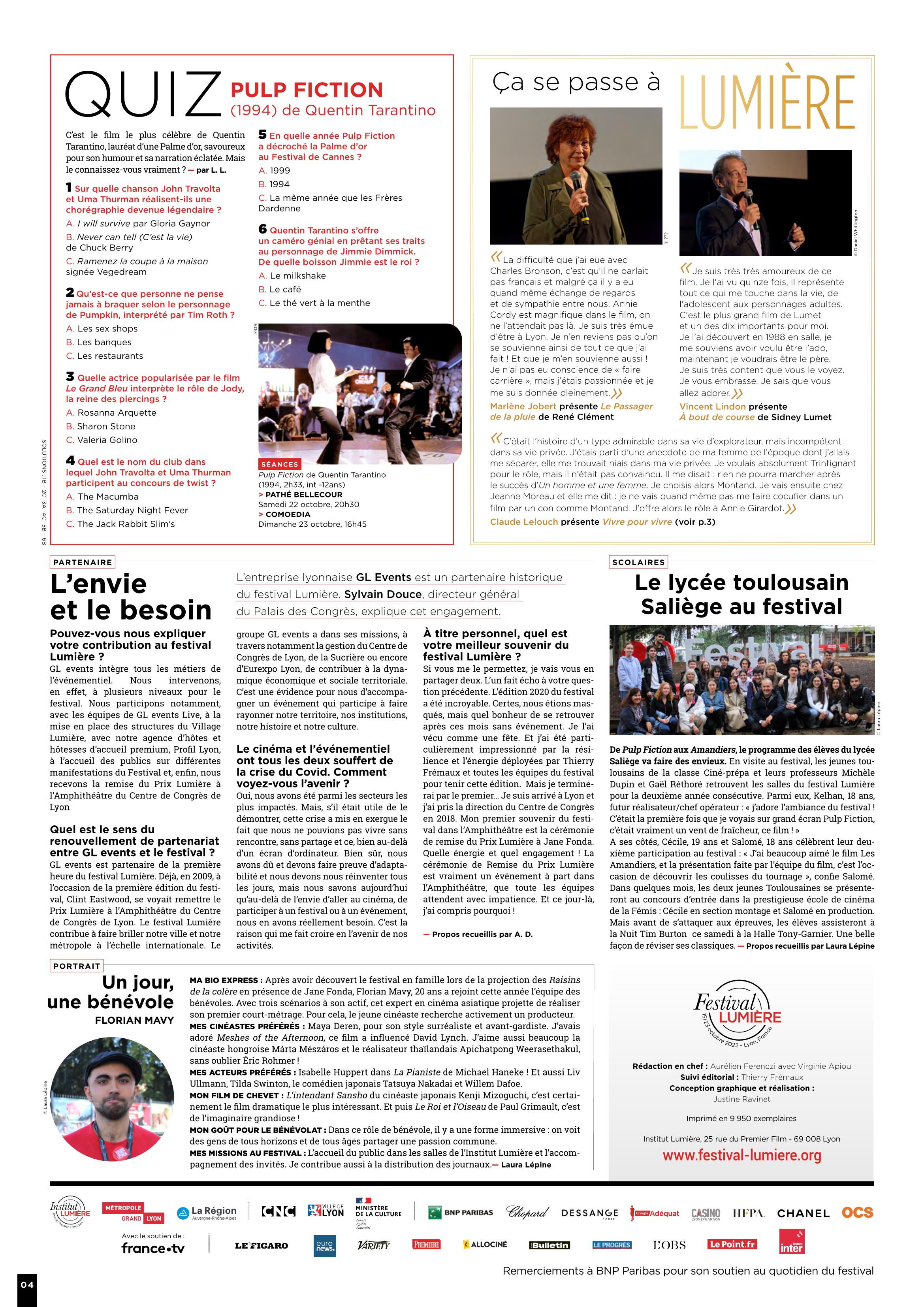 Journal du Festival LUMIERE de Lyon – 08 – 221022 – Samedi -.
