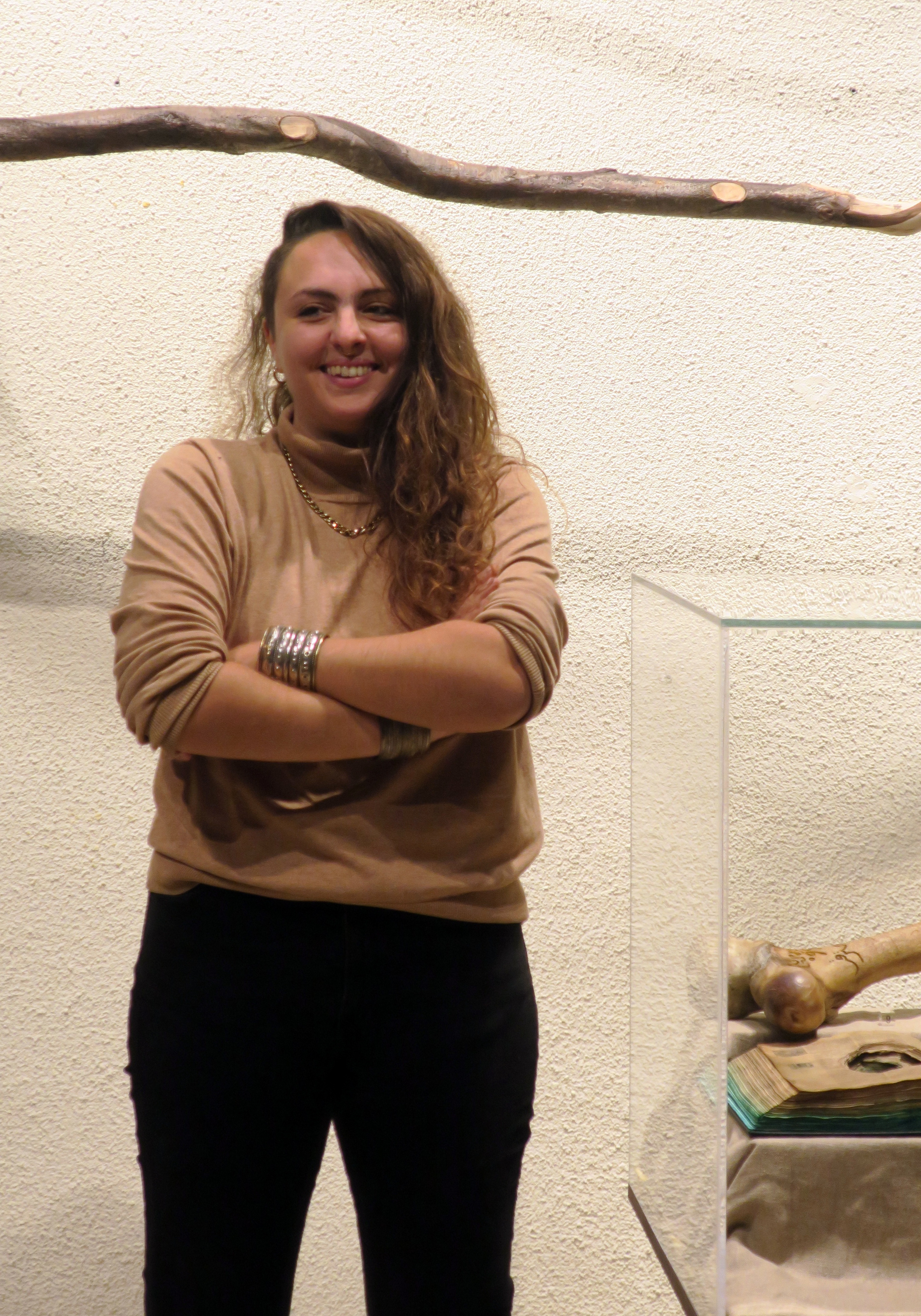 » Une pratique du souterrain, du caché, de l’invisible traverse déjà mon travail dans une approche archéologique. Autour des objets, des lieux et de la mémoire réinvestis, des cahiers ouverts et creusés, des encyclopédies retournées comme un terrain de fouille, des os gravés. Il y a une volonté de traverser le temps dans un sens non-linéaire, vers les profondeurs. Aller du point zéro, vers le -1, -2, -99. Glissement dans la terre, dans le papier, dans l’histoire, dans le corps « .