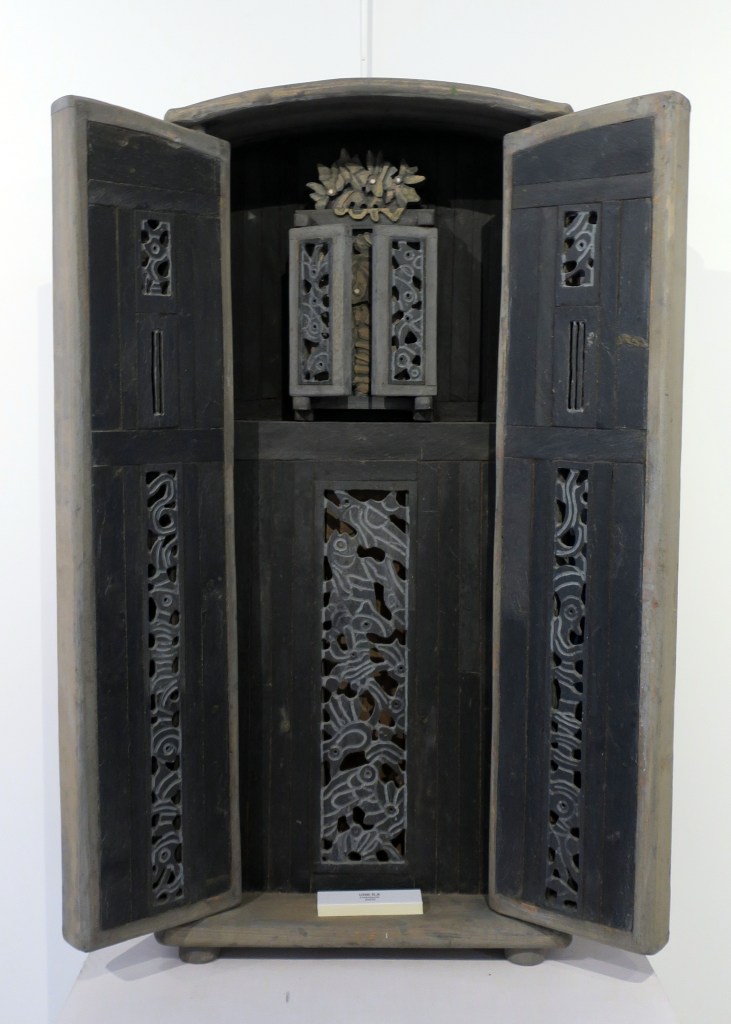 Pascal Verbena » L’Holocauste « , s.d. assemblage de bois et de matériaux divers 200 x 400 cm © crédit photographique: B.M.Caramante. Collection de l’Art Brut, Lausanne.