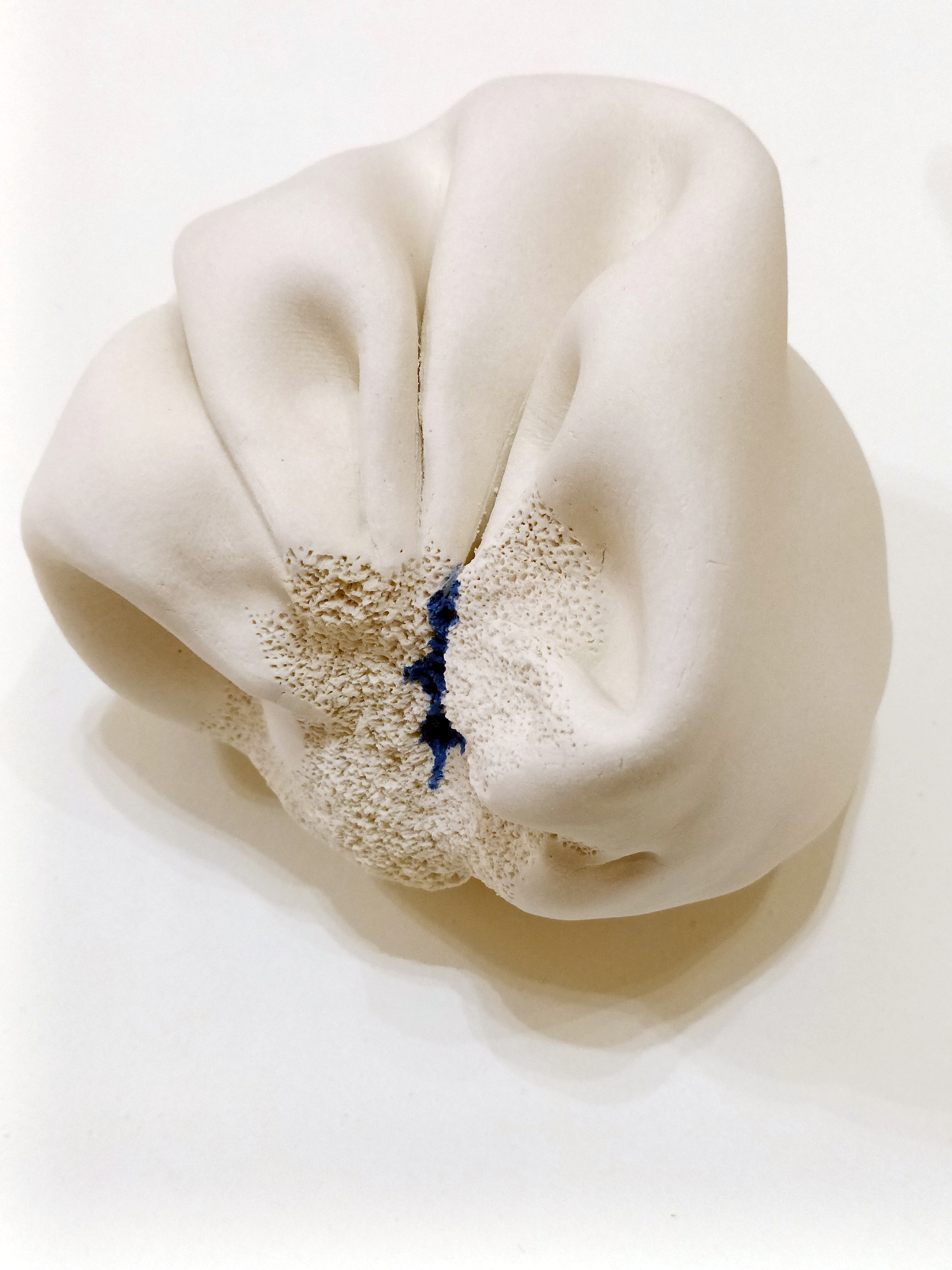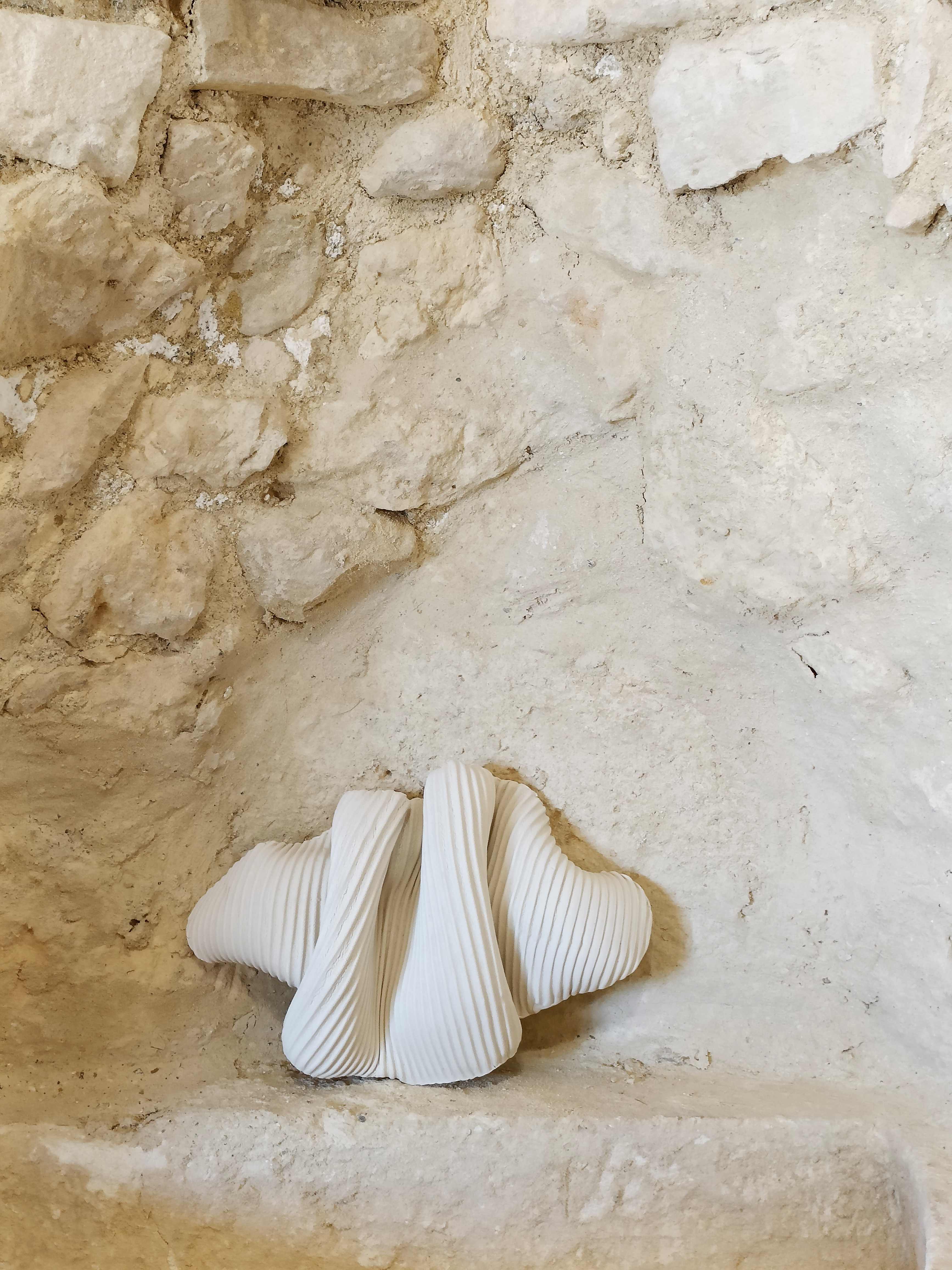 « La porcelaine est avant tout appréciée pour sa translucidité, mais ici, c’est sa blancheur qui permet à la lumière de s’écouler avec la fluidité d’une rivière. Elle épouse librement les reliefs en caressant les courbes, elle peut aussi se faufiler dans les profondeurs secrètes des plis, disparaître et ressurgir là où on ne l’attendait pas. J’aime cette liberté qui échappe à tout contrôle ».