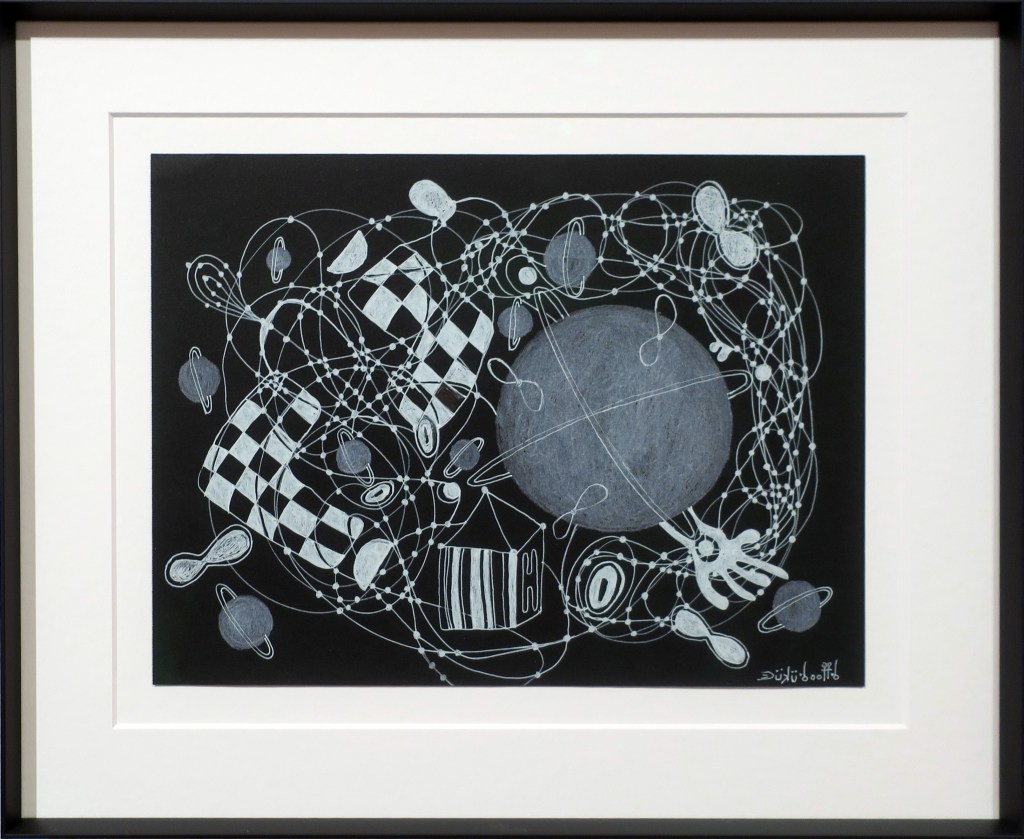 De la recherche plastique et esthétique aux codes et messages à déchiffrer, du monde de l’invisible et des esprits à celui de la science, tout dans l’œuvre d’Ernest Dükü nous renvoie aux regards croisés que l’artiste aime convoquer.