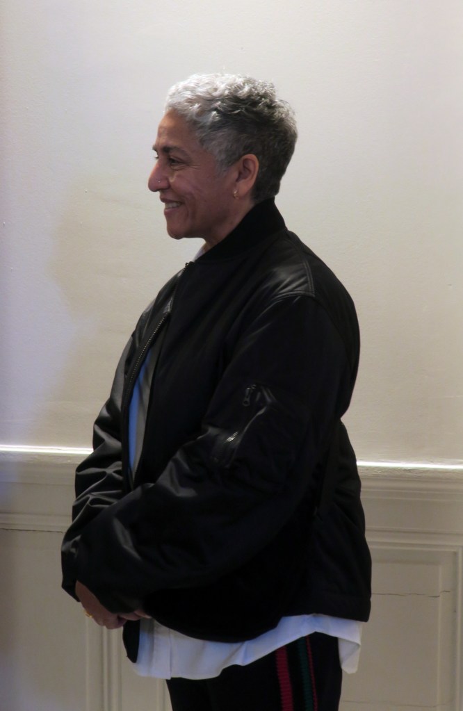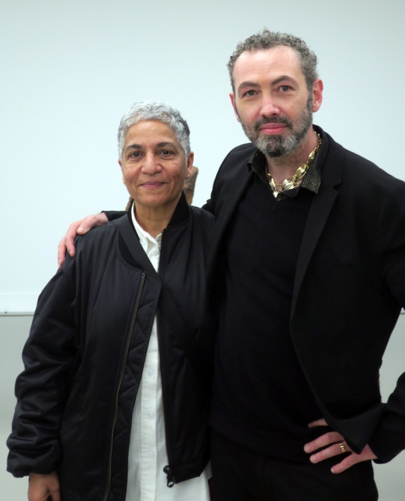 Ci-dessous : Huma Bhabha en compagnie de Vincent Honoré lors de la visite de presse du 17 novembre 2023.