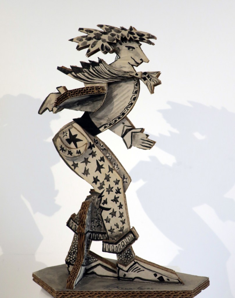 Sculptures joyeuses, peintures en bas relief et autres collages naïfs sont autant d’histoires ouvertes qui s’inscrivent dans un délire extravagant.