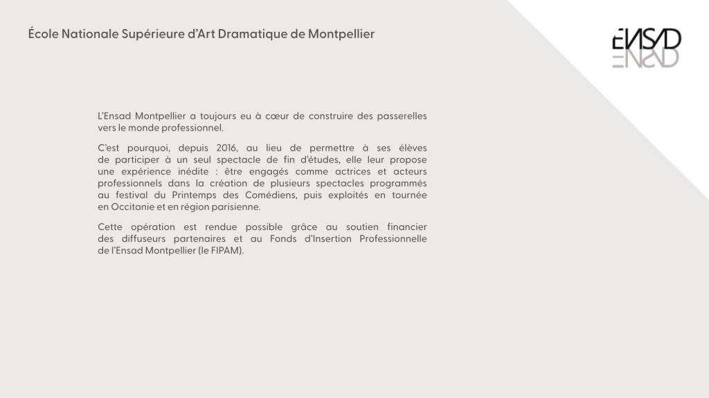ENSAD Montpellier | École Nationale Supérieure d’Art Dramatique de Montpellier (ensad-montpellier.fr)