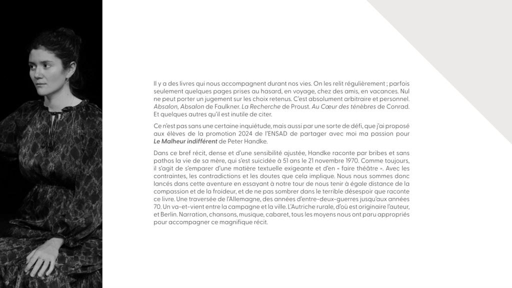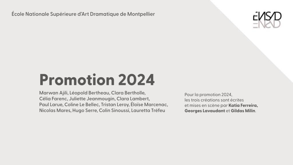 seront ravis de vous faire découvrir les productions de la promotion de fin de cycle de l’ENSAD dans le cadre du 38ème Printemps des comédiens (Du jeudi 30 mai au samedi 21 juin 2024).